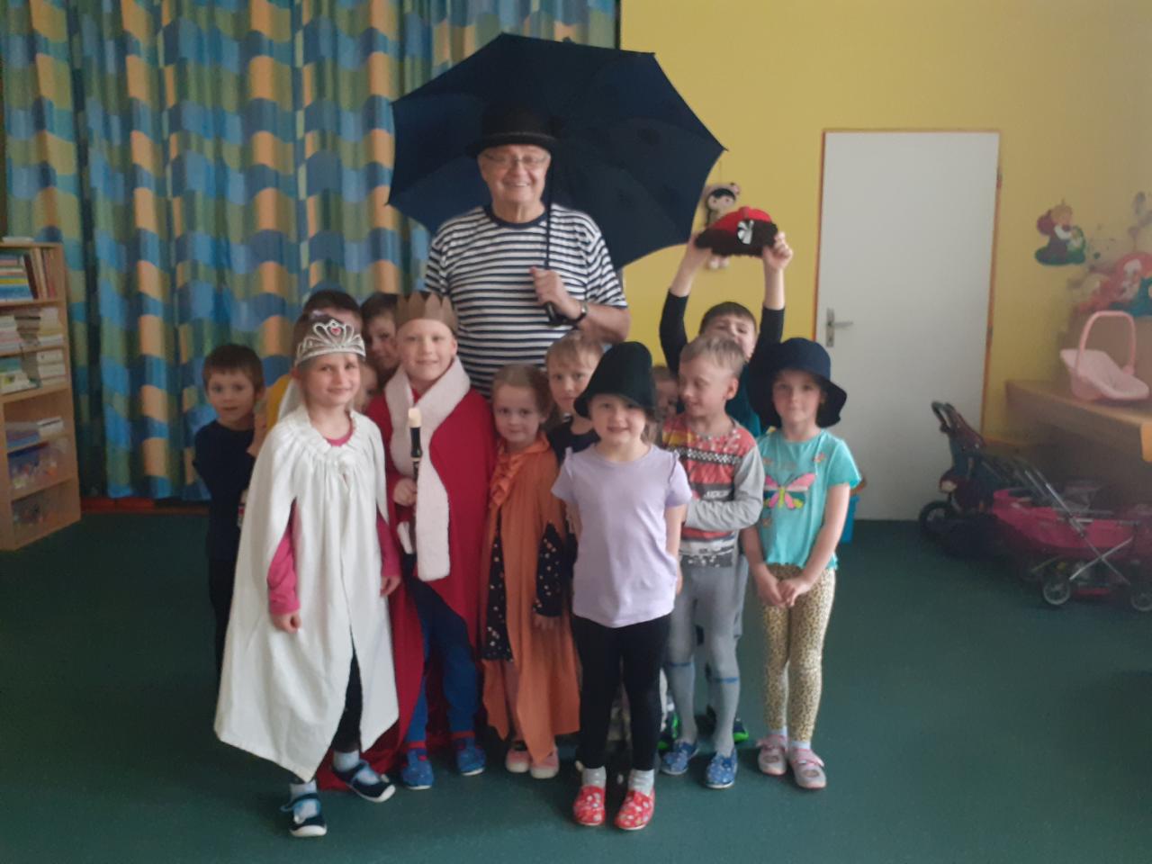 V dubnu nás navštívilo vyhlášené divadýlko se zkušeným hercem a učitelem panem Daňhelem. Všechny děti byly zapojené do pohádky o draku Karamelákovi a krásně se bavily jako herci i jako diváci.