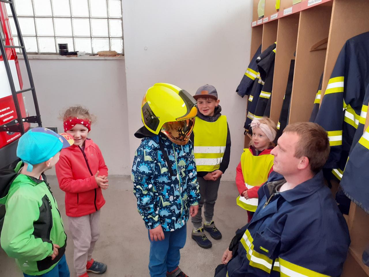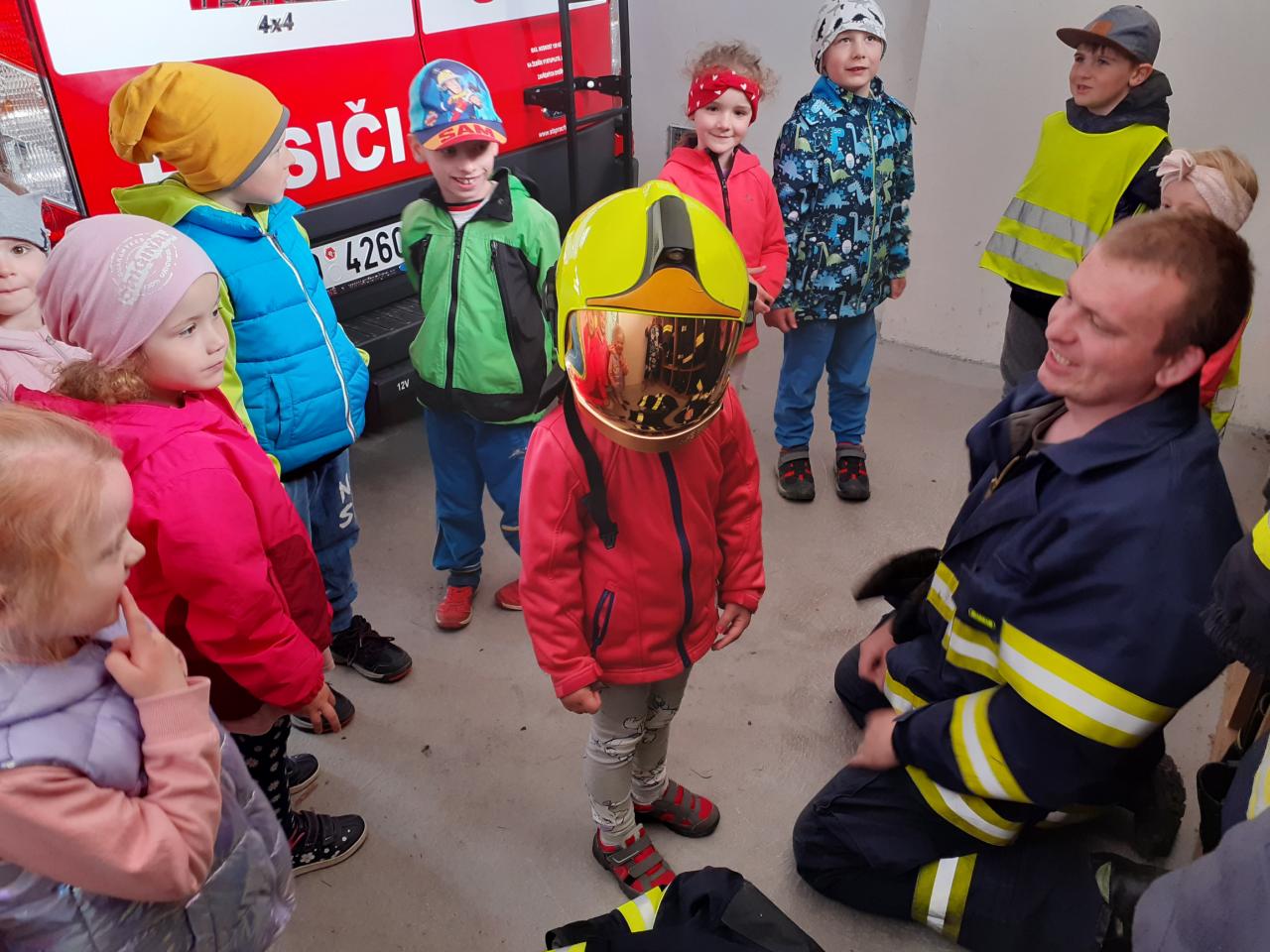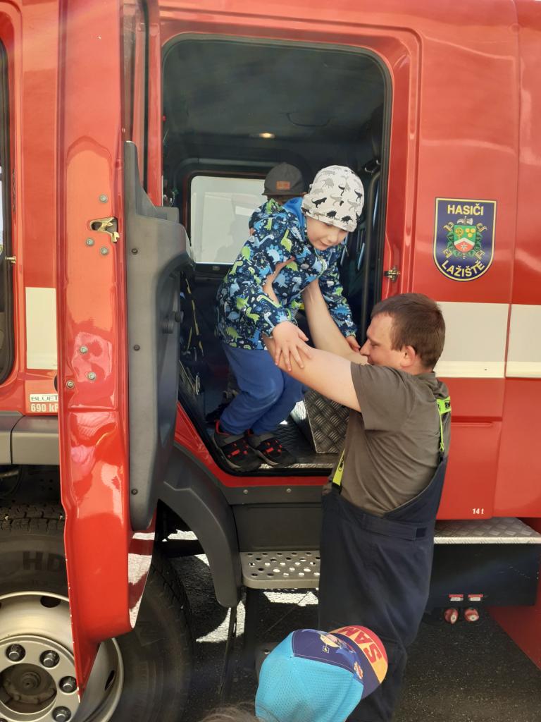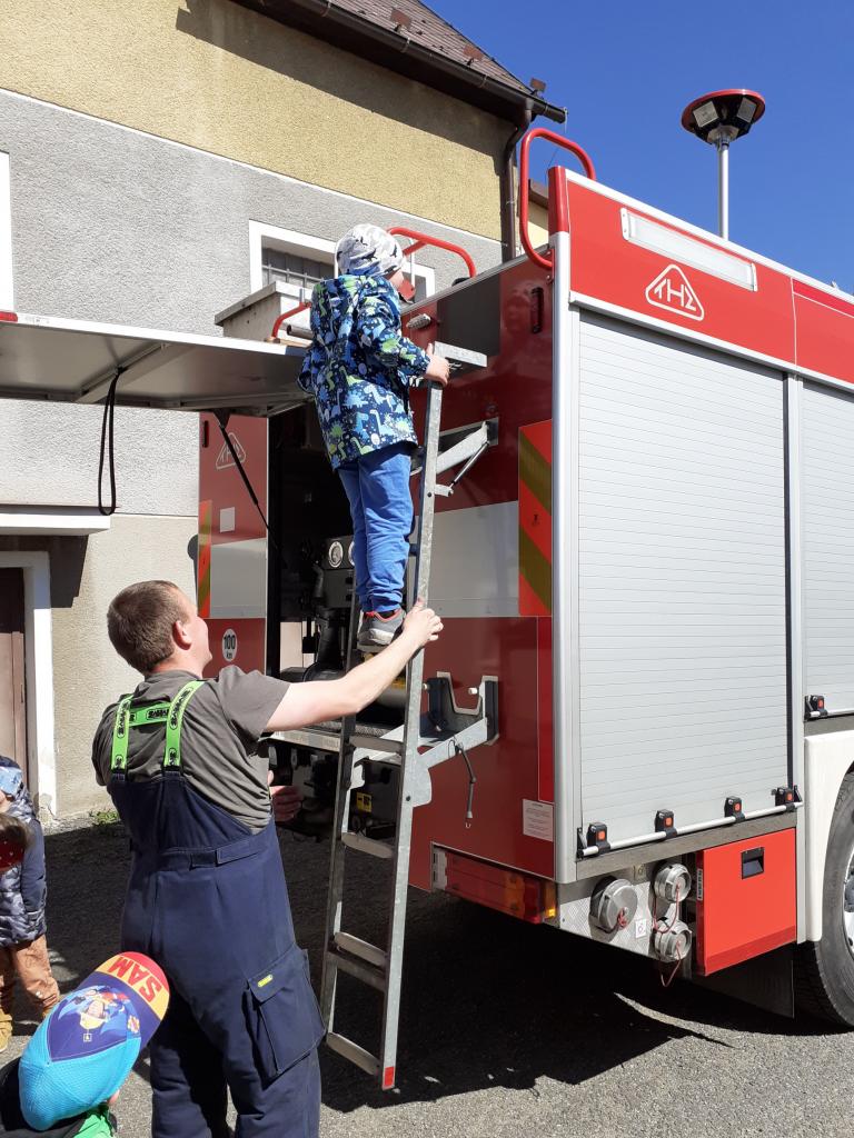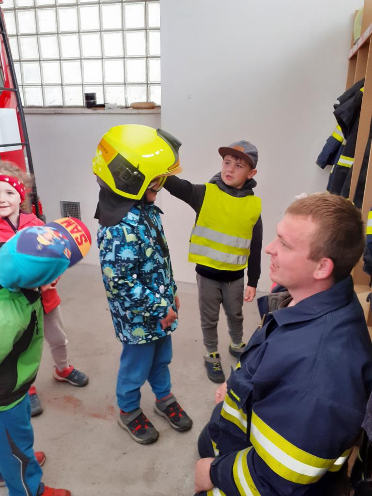 Prohlídka hasičské zbrojnice, techniky a výstroje i výzbroje místních hasičů děti velice nadchla. Kdo měl zájem, mohl si zkusit snad všechno. Na závěr došlo i na přímou akci, stříkání na cíl a nikdo neminul. Za úžasnou komentovanou prohlídku moc děkujeme dobrovolnému hasiči Jiřímu Podlešákovi.