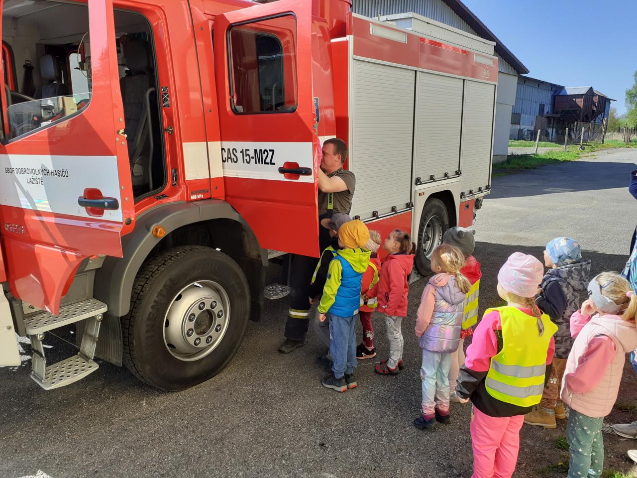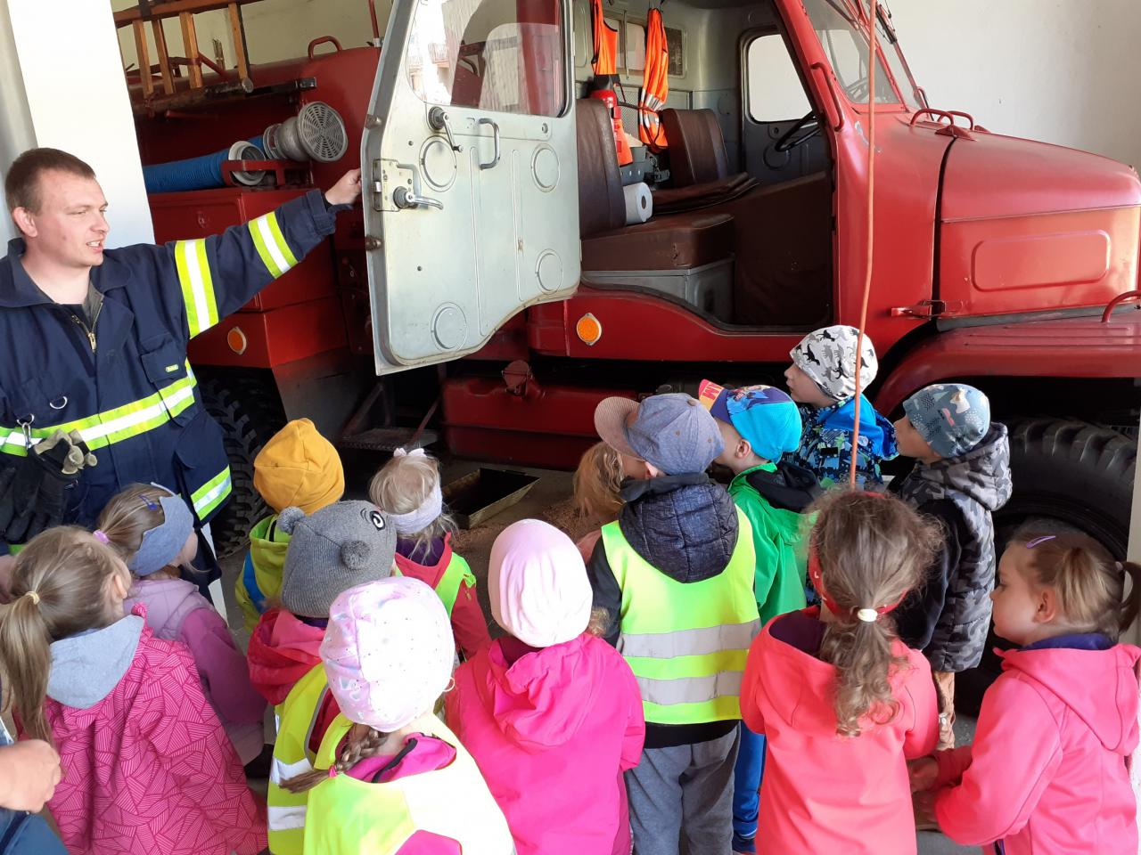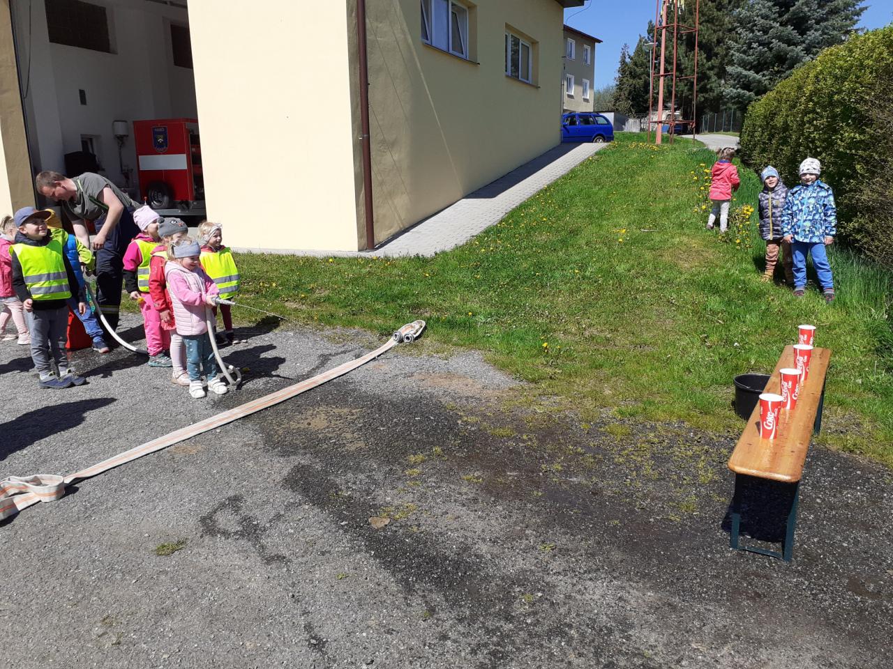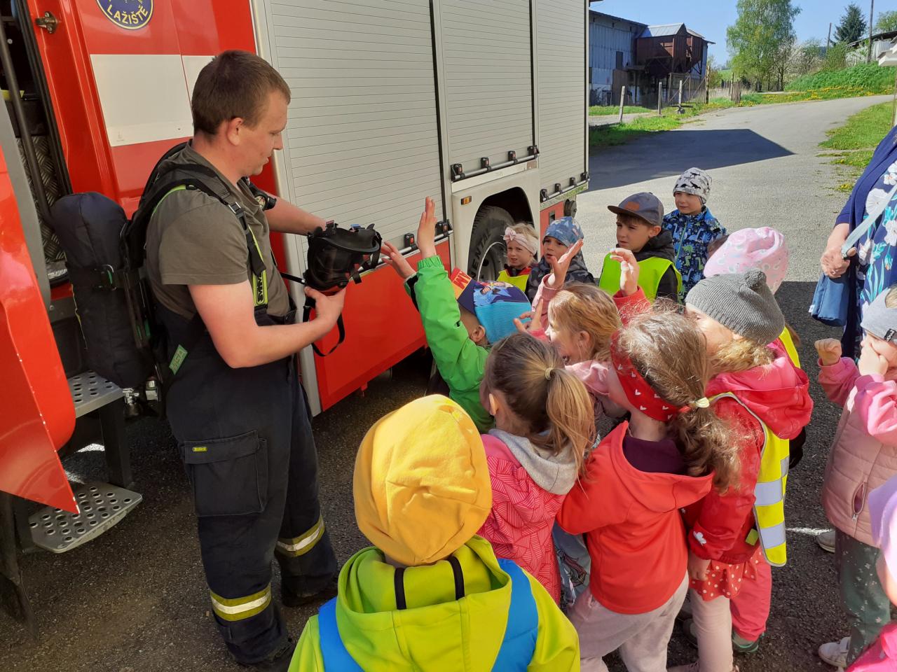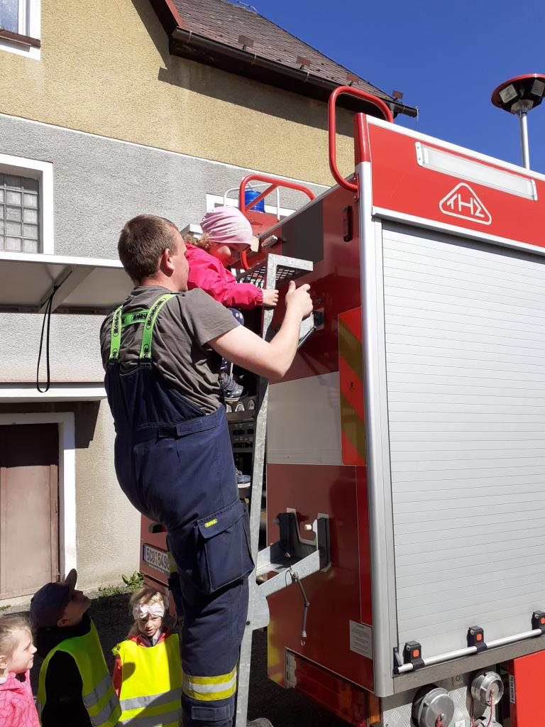 Prohlídka hasičské zbrojnice, techniky a výstroje i výzbroje místních hasičů děti velice nadchla. Kdo měl zájem, mohl si zkusit snad všechno. Na závěr došlo i na přímou akci, stříkání na cíl a nikdo neminul. Za úžasnou komentovanou prohlídku moc děkujeme dobrovolnému hasiči Jiřímu Podlešákovi.