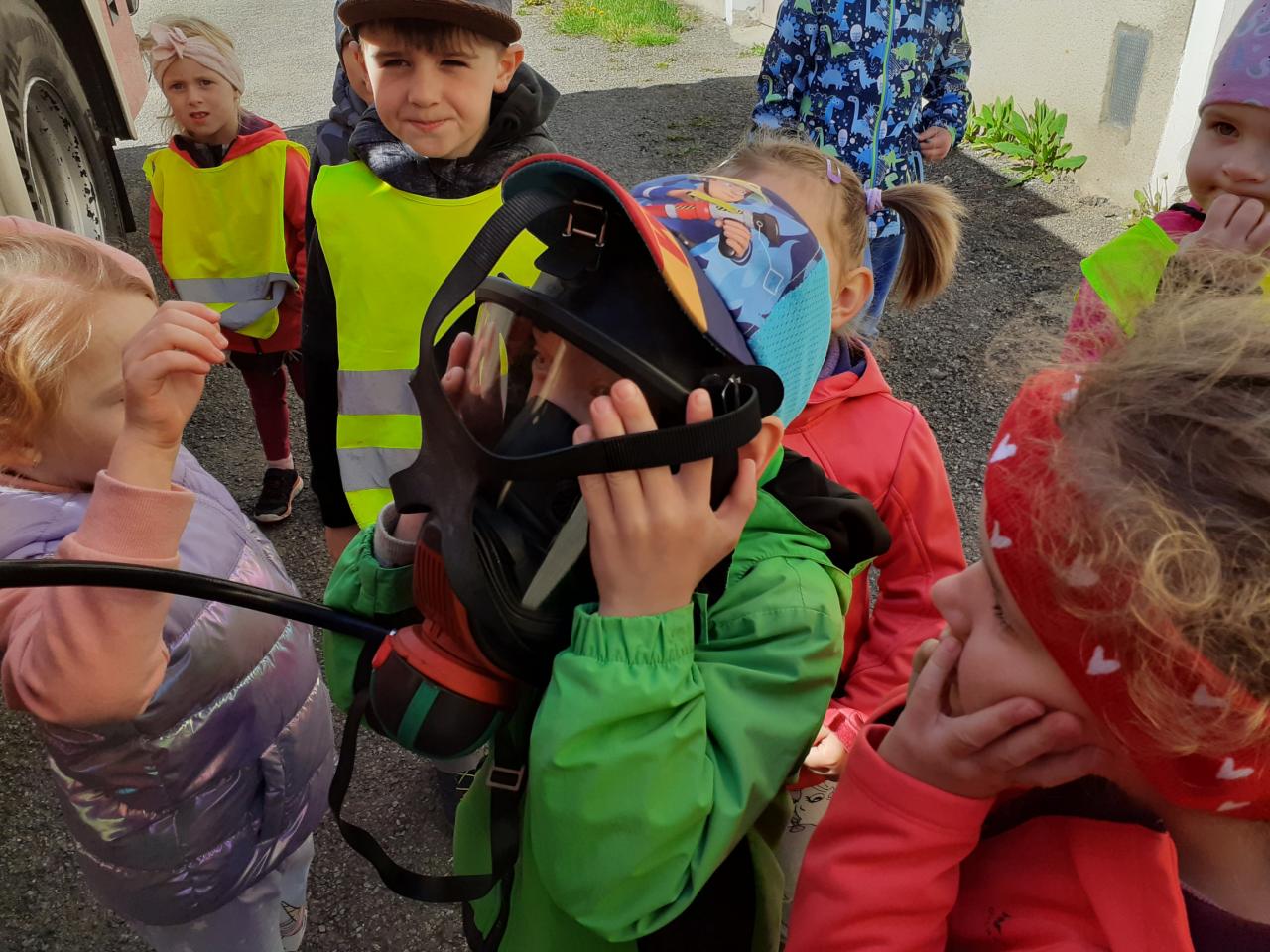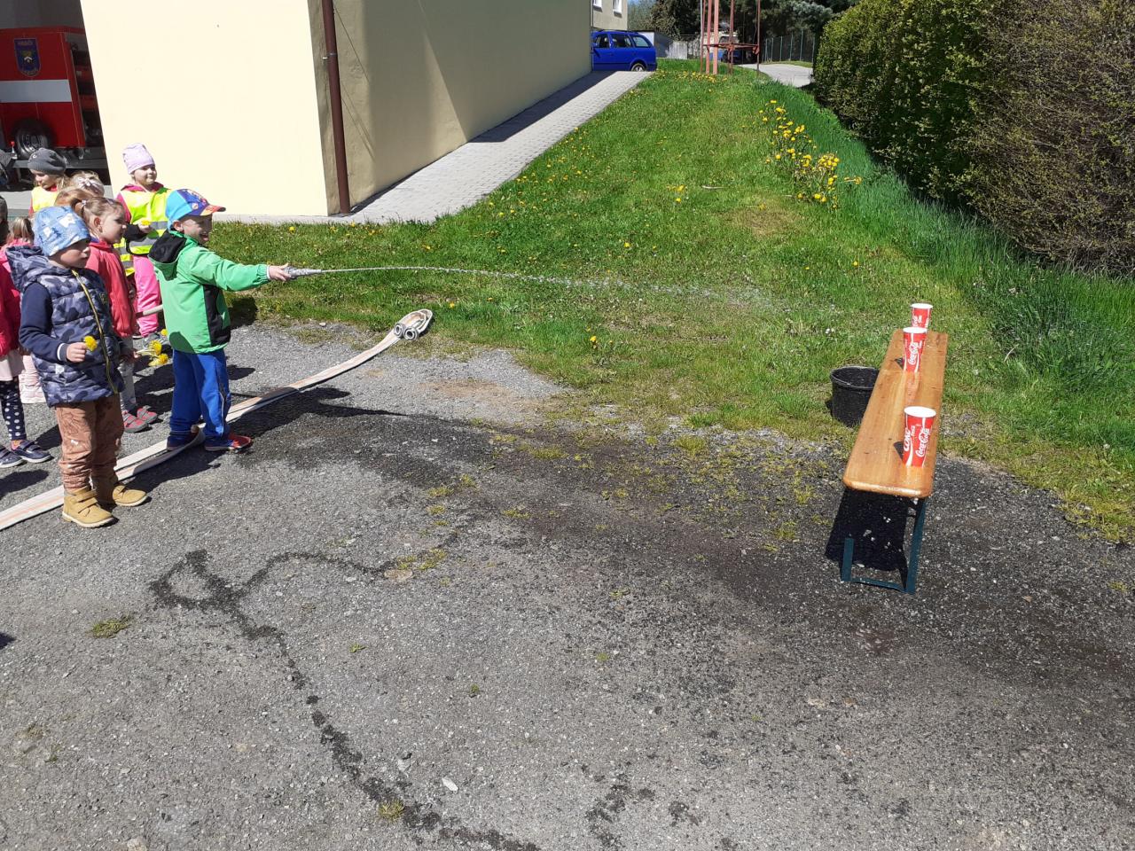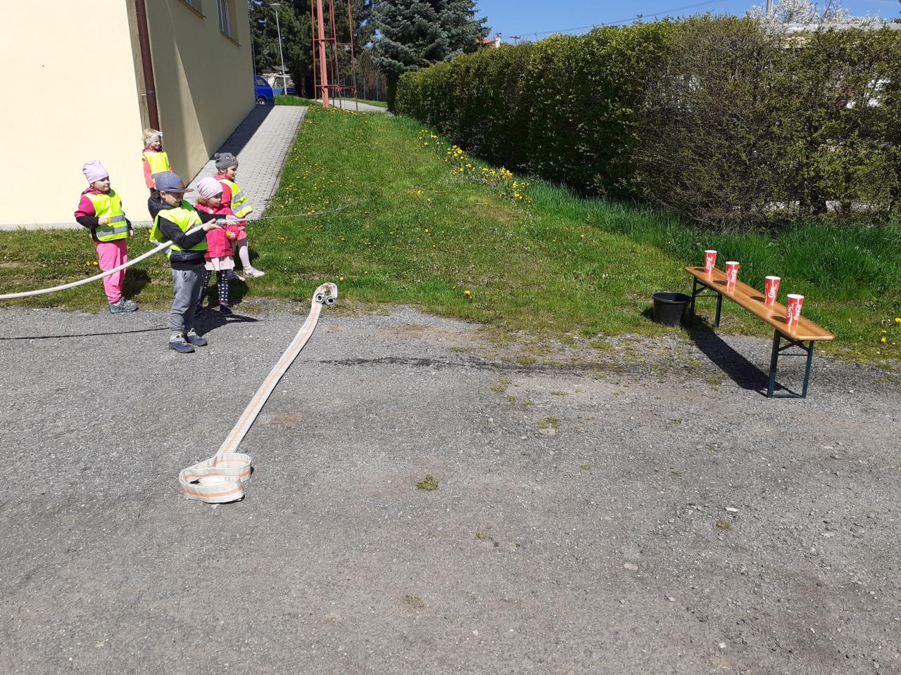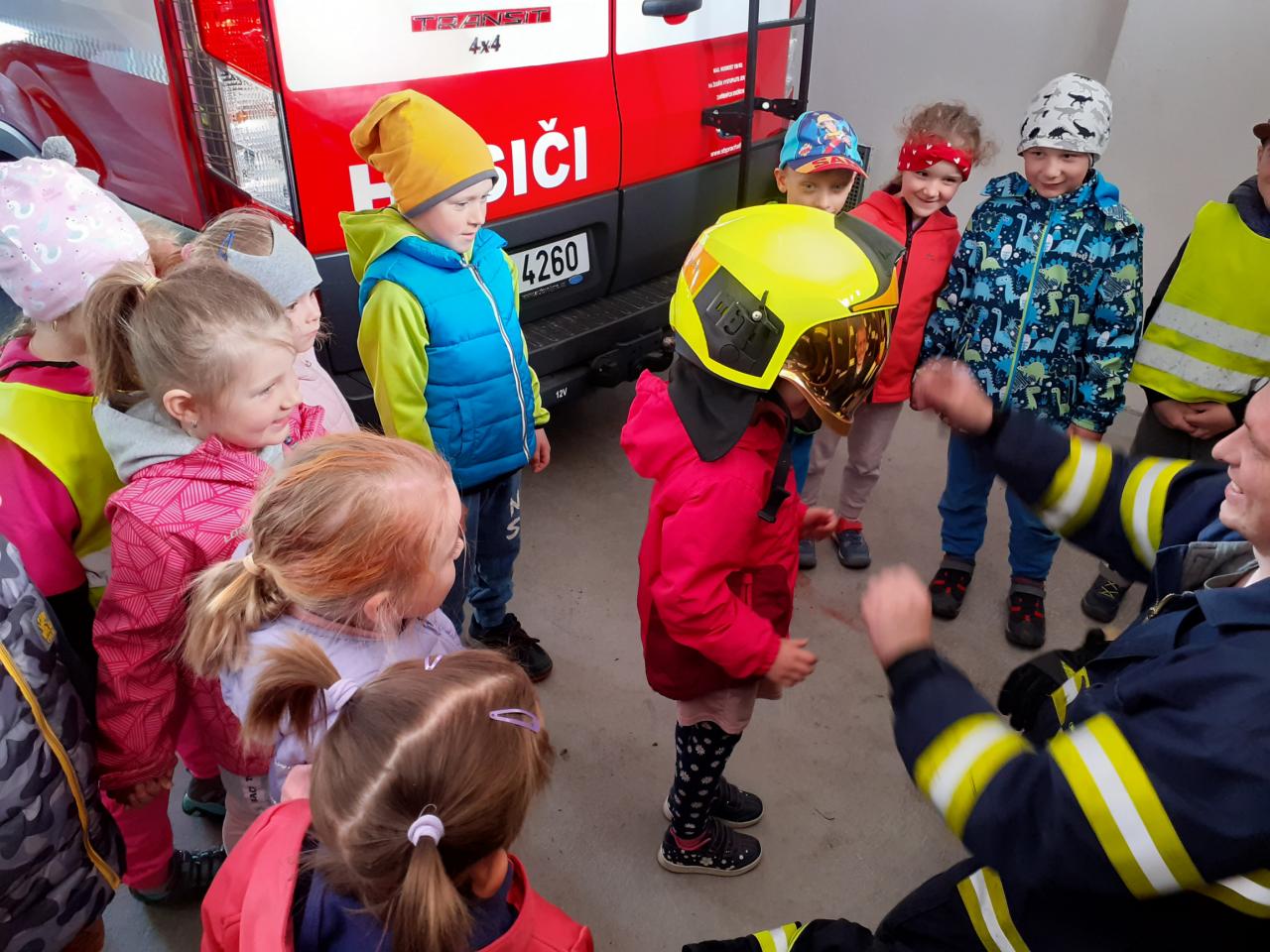 Prohlídka hasičské zbrojnice, techniky a výstroje i výzbroje místních hasičů děti velice nadchla. Kdo měl zájem, mohl si zkusit snad všechno. Na závěr došlo i na přímou akci, stříkání na cíl a nikdo neminul. Za úžasnou komentovanou prohlídku moc děkujeme dobrovolnému hasiči Jiřímu Podlešákovi.