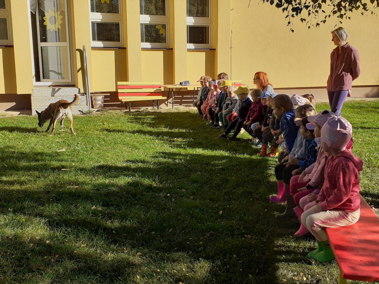 Manželé Molnárovi se dlouhodobě věnují výcviku psů a nás velice potěšili ukázkou na školkové zahradě. Pejsci byli velice šikovní a předváděli poslušnost i nevídané kousky. Moc děkujeme za tuto příležitost.