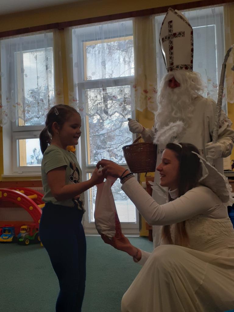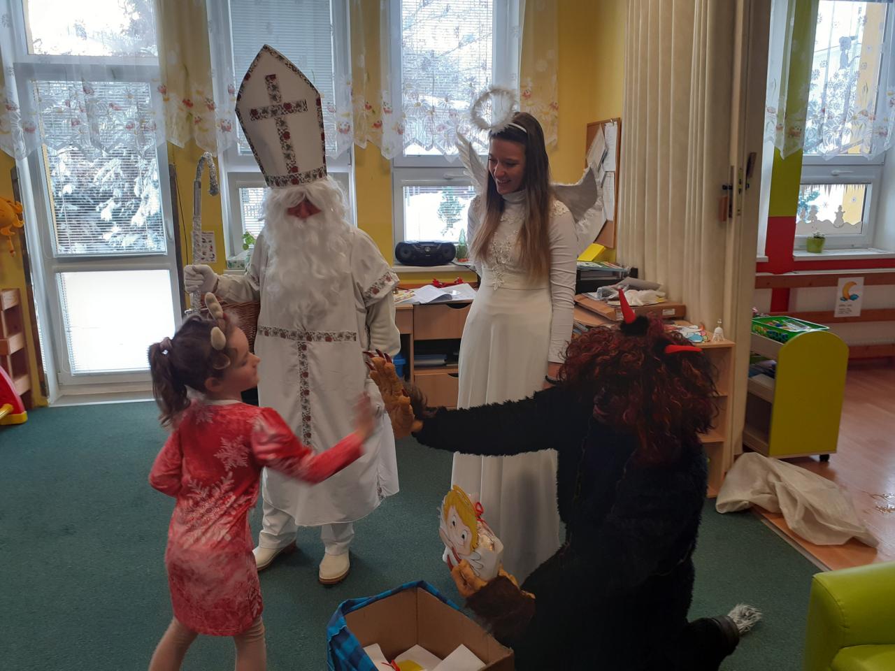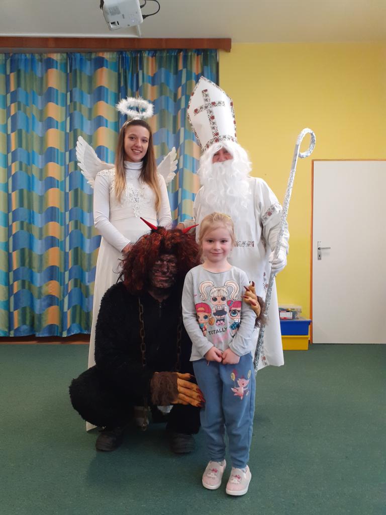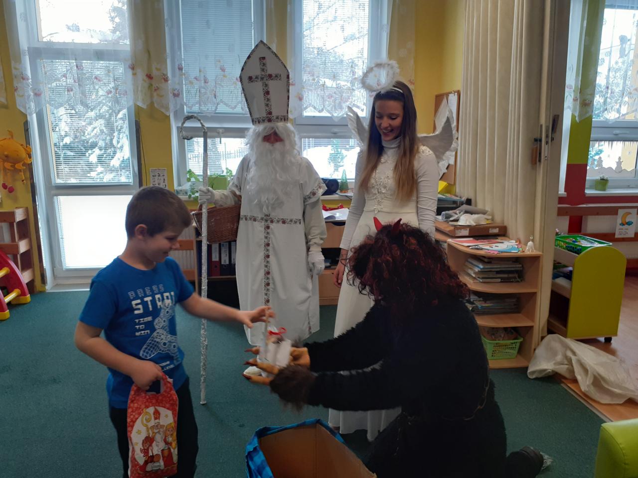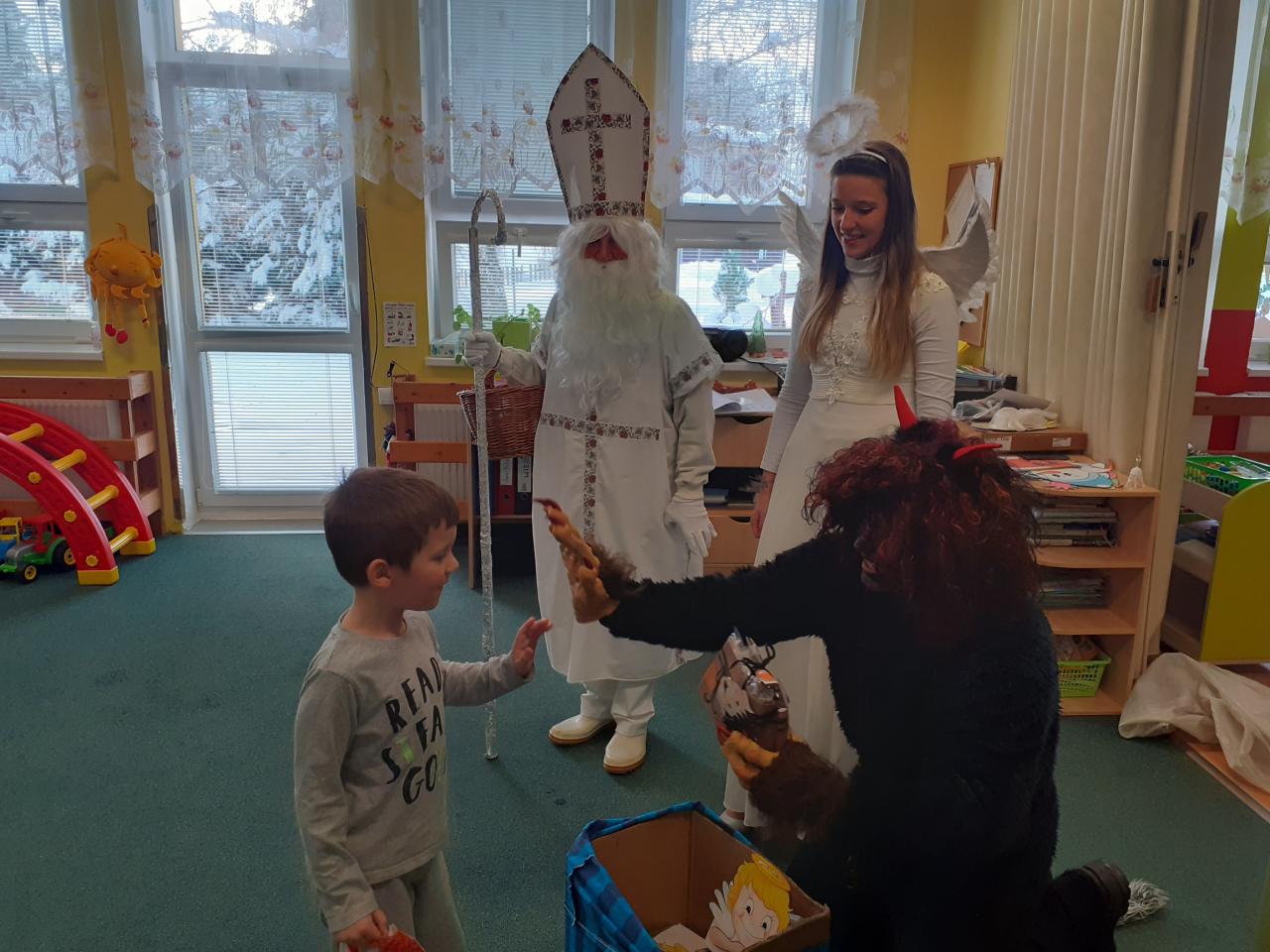 I v letošním roce nás navštívil Mikuláš se svými pomocníky. Děti byly plné očekávání a hbitě plnily zadané úkoly, zazpívaly, zatančily a nakonec si i čertíka všechny pohladily.