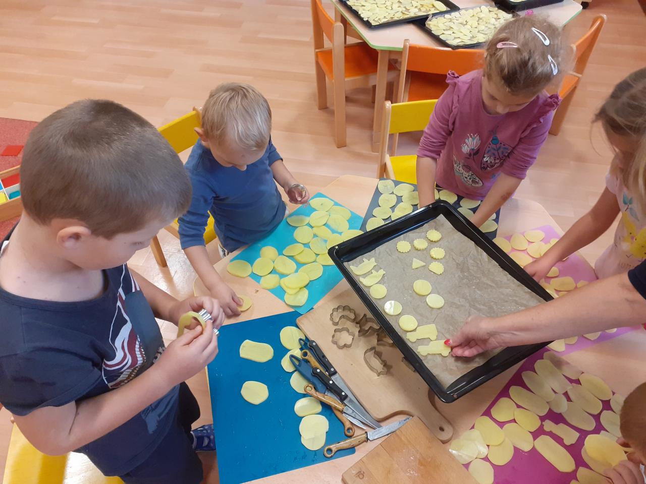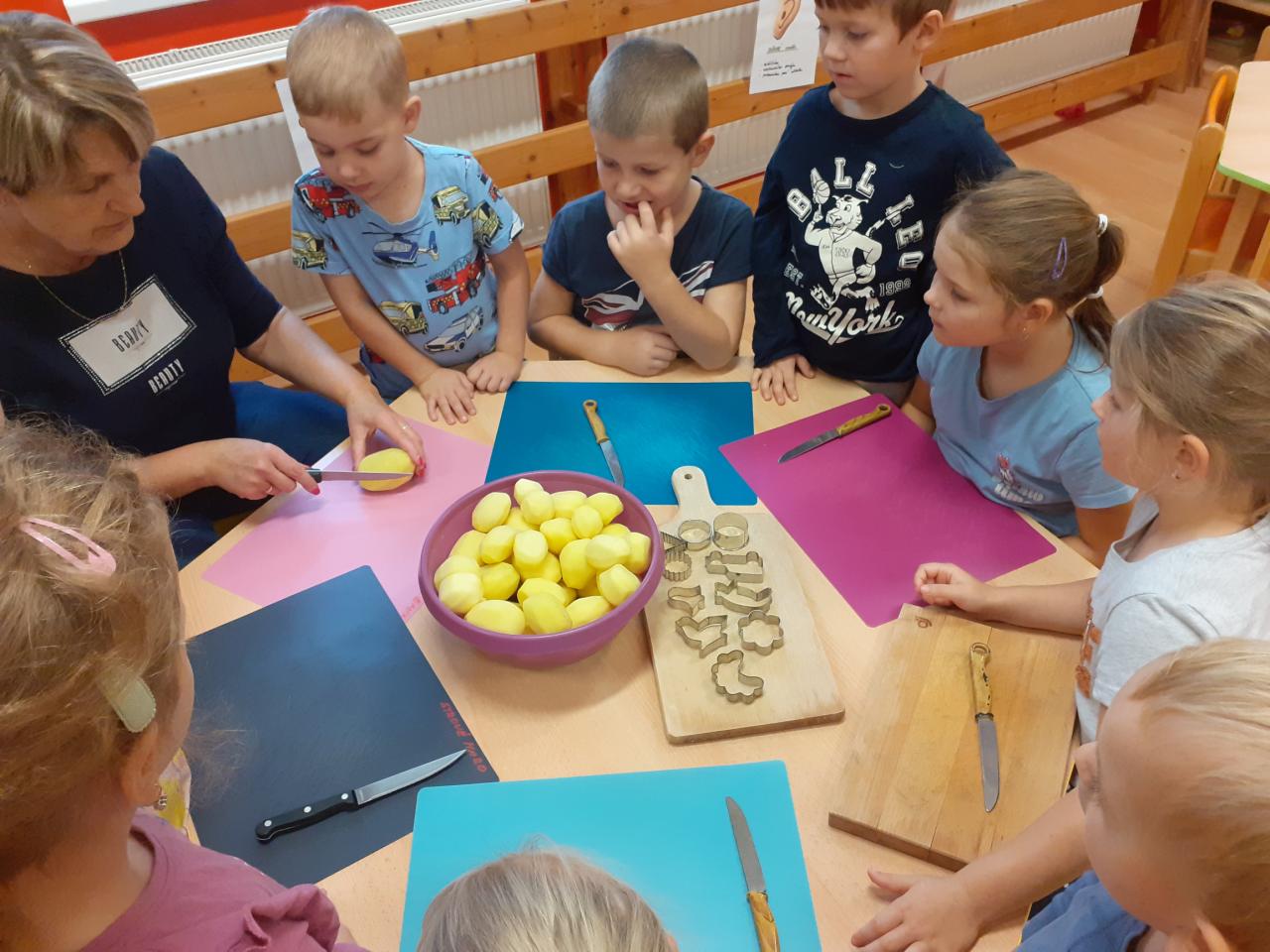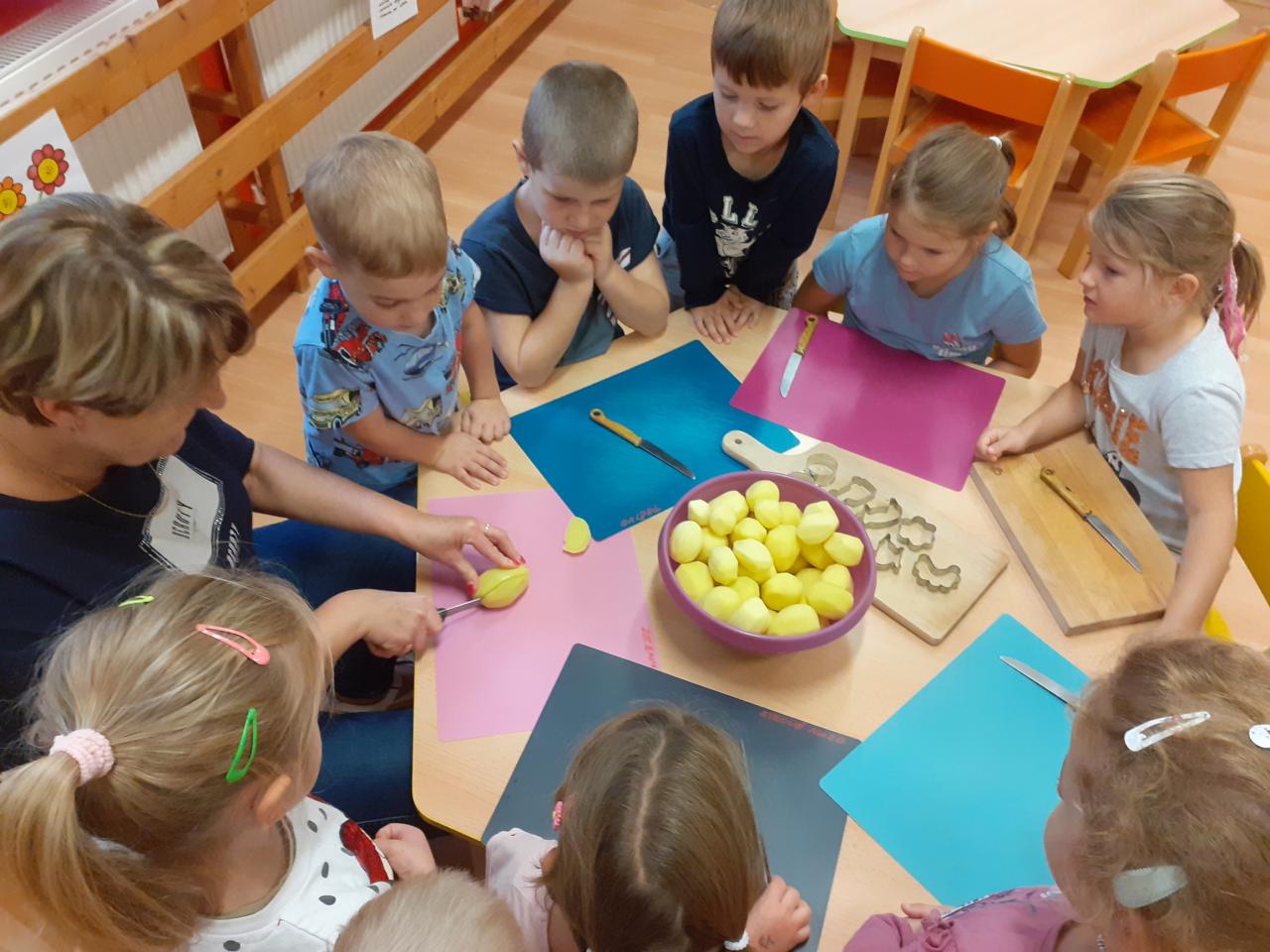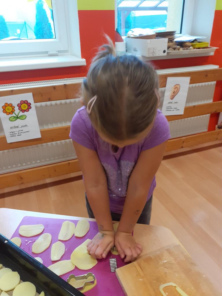 Vše začalo tichou poštou pro rodiče...Vzkaz zněl jasně...Donést pár brambor... Pak jsme si hráli s jejich počítáním, tříděním podle velikosti, tvaru, hmotnosti, různě jsme je porovnávali, použili je při rozcvičce, některé při výtvarce, kutáleli, rozkrájeli, upekli a snědli.