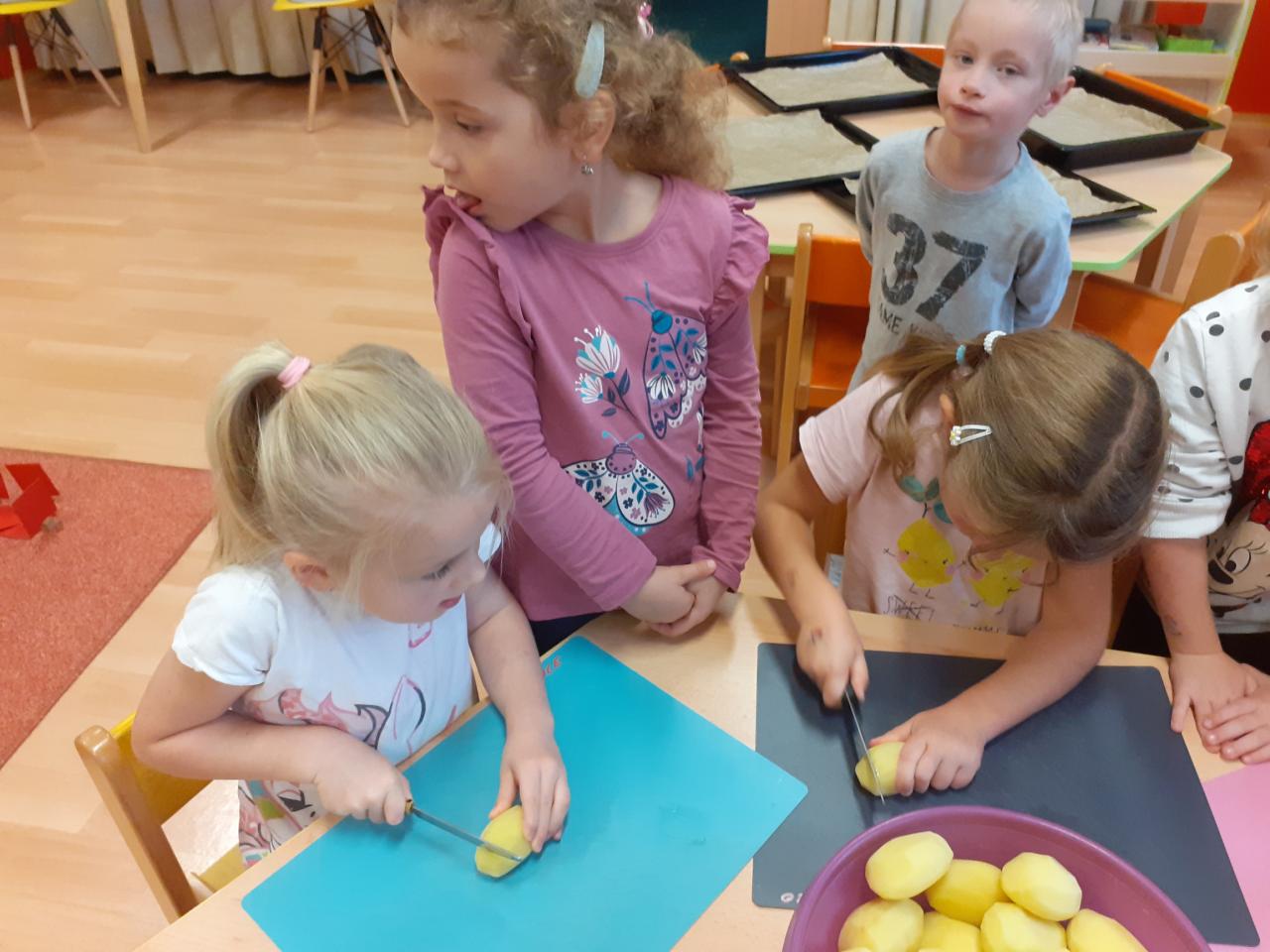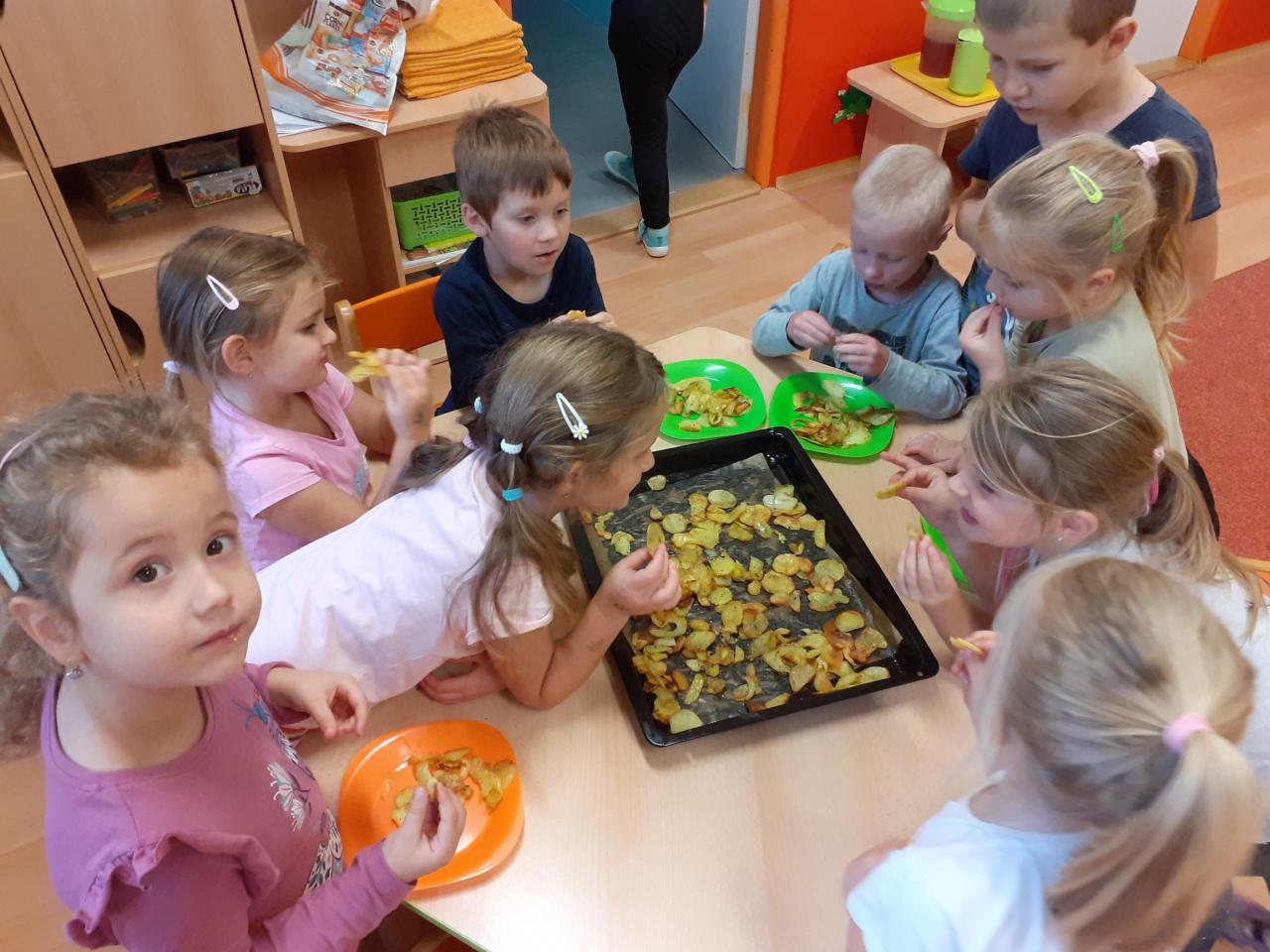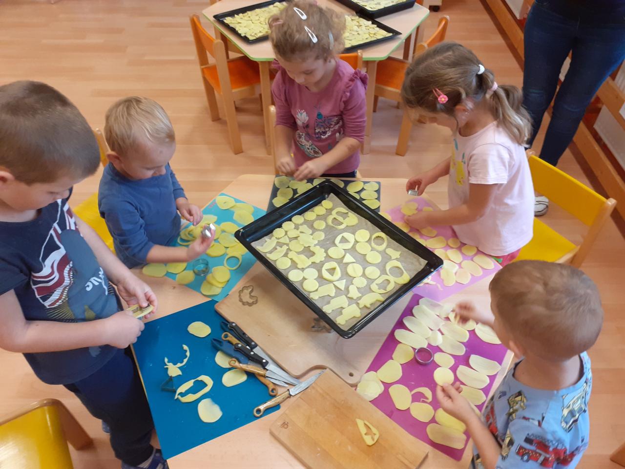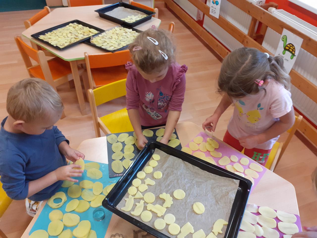 Vše začalo tichou poštou pro rodiče...Vzkaz zněl jasně...Donést pár brambor... Pak jsme si hráli s jejich počítáním, tříděním podle velikosti, tvaru, hmotnosti, různě jsme je porovnávali, použili je při rozcvičce, některé při výtvarce, kutáleli, rozkrájeli, upekli a snědli.