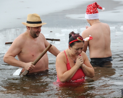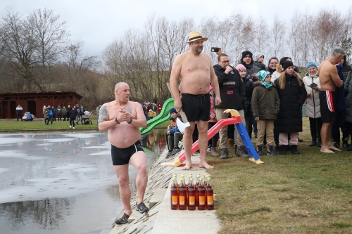 Obec pořádala vánoční otužování v místním koupališti.